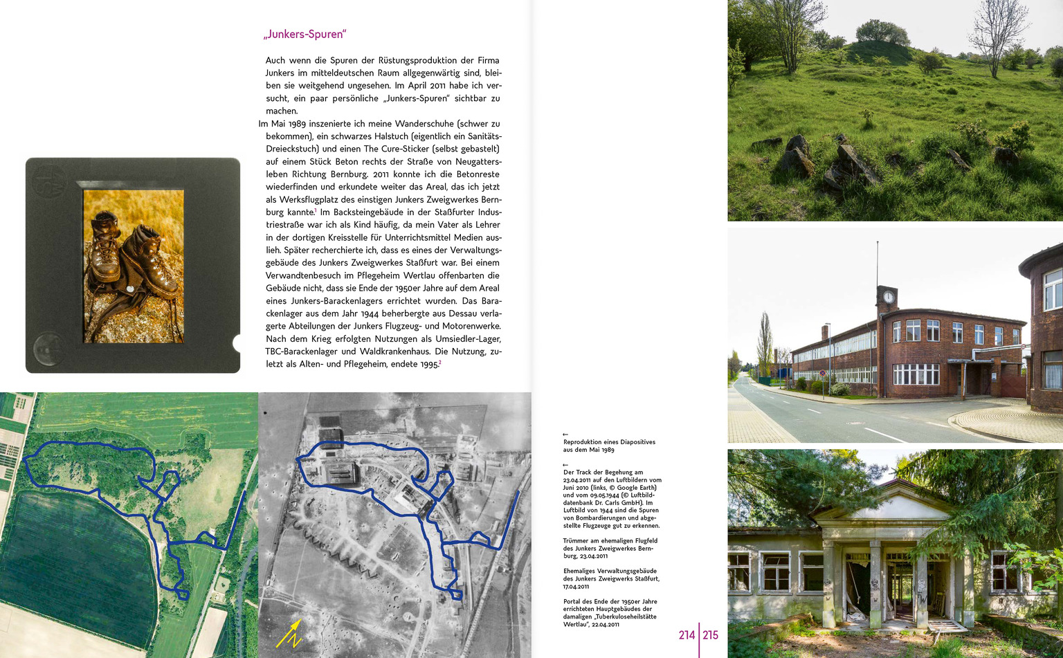 Auch wenn die Spuren der Rüstungsproduktion der Firma Junkers im mitteldeutschen Raum allgegenwärtig sind, bleiben sie weitgehend ungesehen. Im April 2011 habe ich versucht, ein paar persönliche »Junkers-Spuren« sichtbar zu machen.