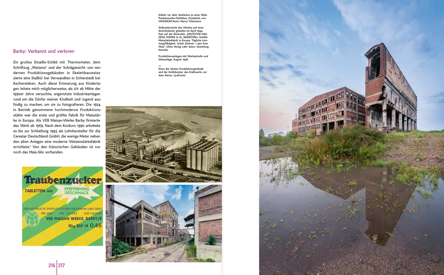 Doppelseite »Barby: Verkannt und verloren« aus dem Beitrag »Das Virtuelle Museum der Toten Orte zwischen Heimatkunde und Weltgeschichte« im Band »Transformationen - Industriekultur in Sachsen-Anhalt«.