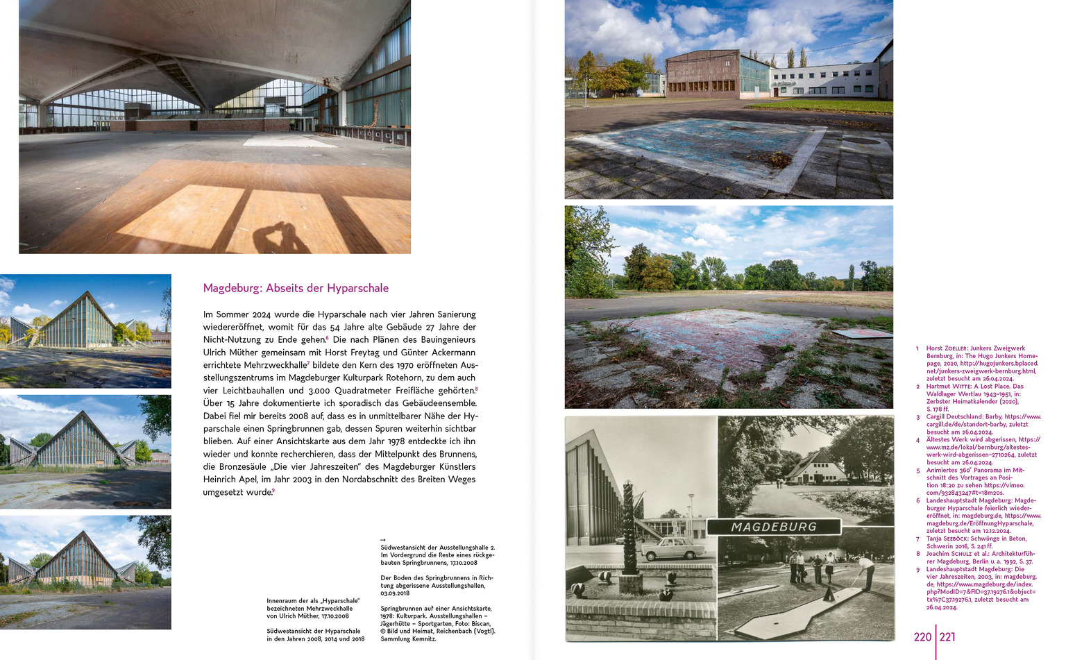 Doppelseite »Magdeburg: Abseits der Hyparschale« aus dem Beitrag »Das Virtuelle Museum der Toten Orte zwischen Heimatkunde und Weltgeschichte« im Band »Transformationen - Industriekultur in Sachsen-Anhalt«.