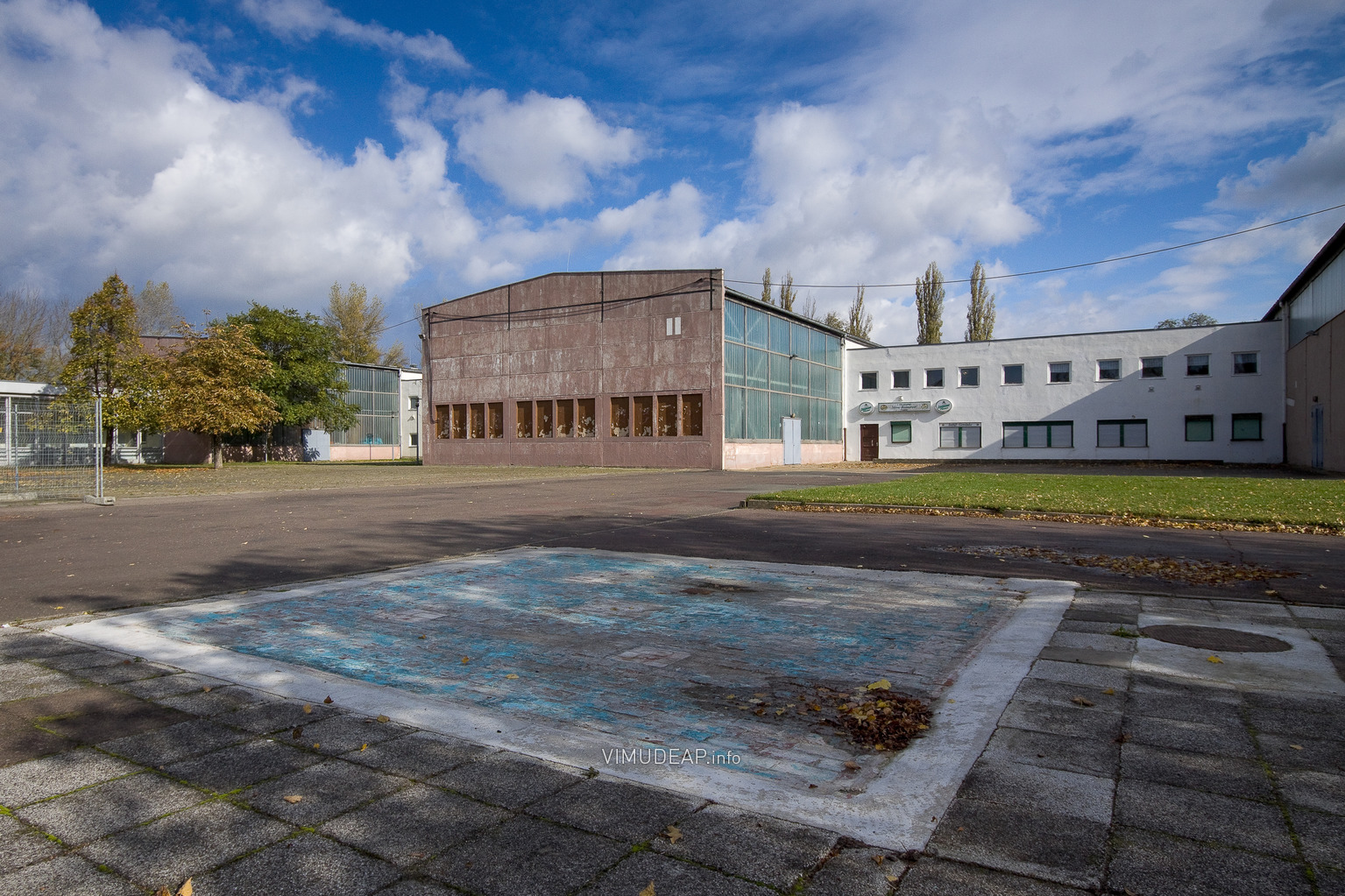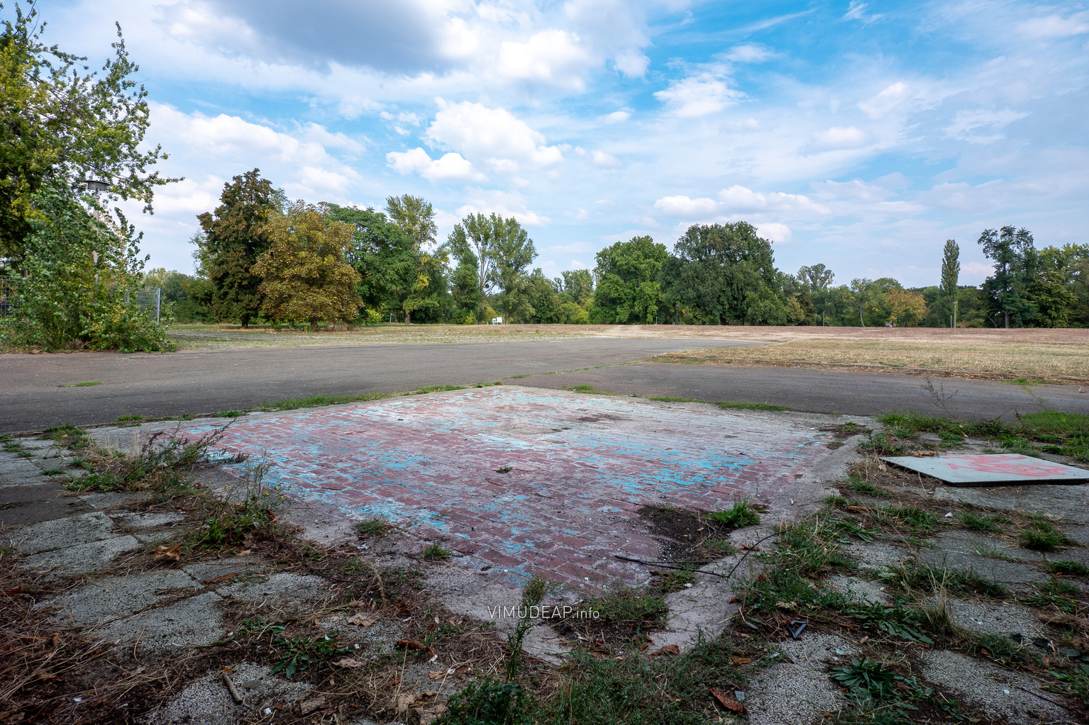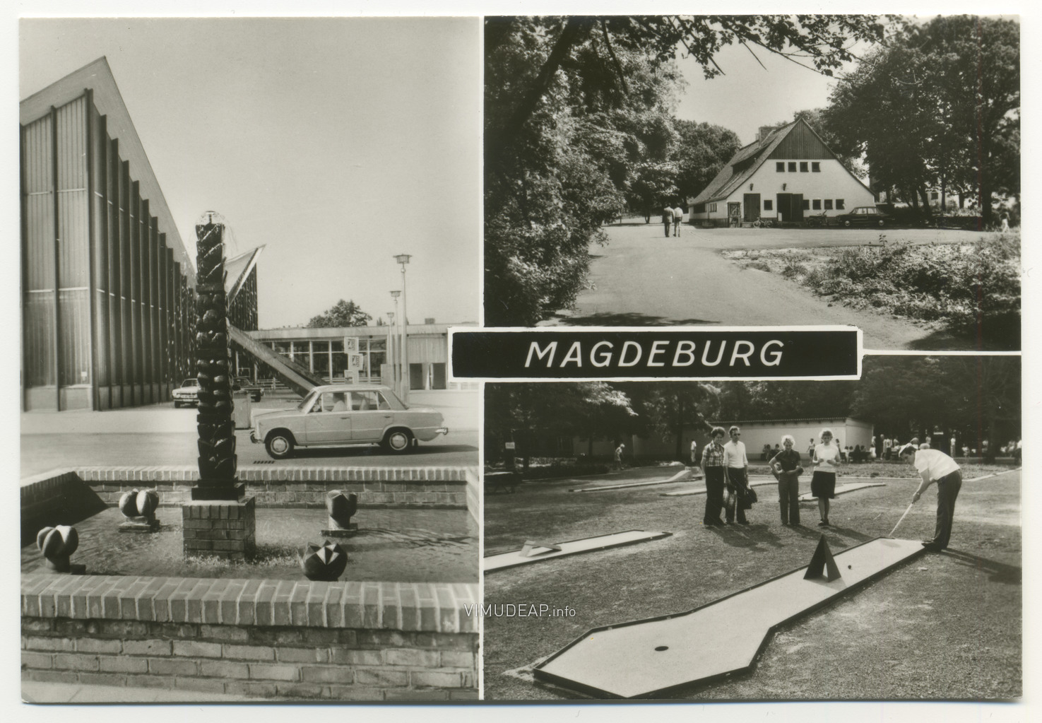 Über 15 Jahre dokumentierte ich sporadisch das Gebäudeensemble. Dabei fiel mir bereits 2008 auf, dass es in unmittelbarer Nähe der Hyparschale einen Springbrunnen gab, dessen Spuren weiterhin sichtbar blieben. Auf einer Ansichtskarte aus dem Jahr 1978 entdeckte ich ihn wieder und konnte recherchieren, dass der Mittelpunkt des Brunnens, die Bronzesäule »Die vier Jahreszeiten« des Magdeburger Künstlers Heinrich Apel, im Jahr 2003 in den Nordabschnitt des Breiten Weges umgesetzt wurde.[9]